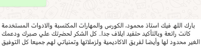 | تدريب اون لاين (طالب الى مدرب) | 8 جلسات | ساعة وربع للجلسة | (مسائية و صباخية) |